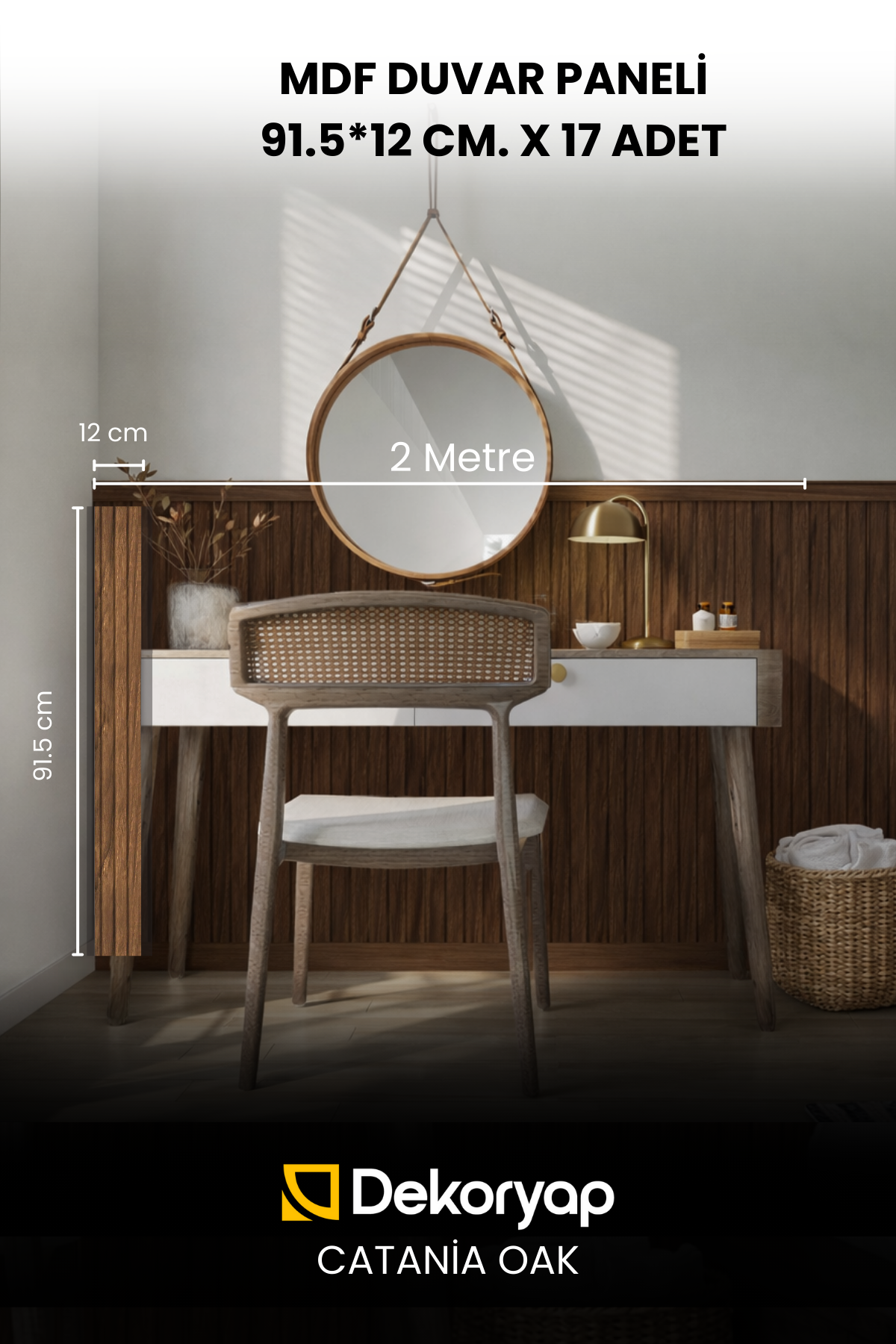 Dekoryap MDF Duvar Paneli CATANİA OAK (Koyu Meşe) Renk